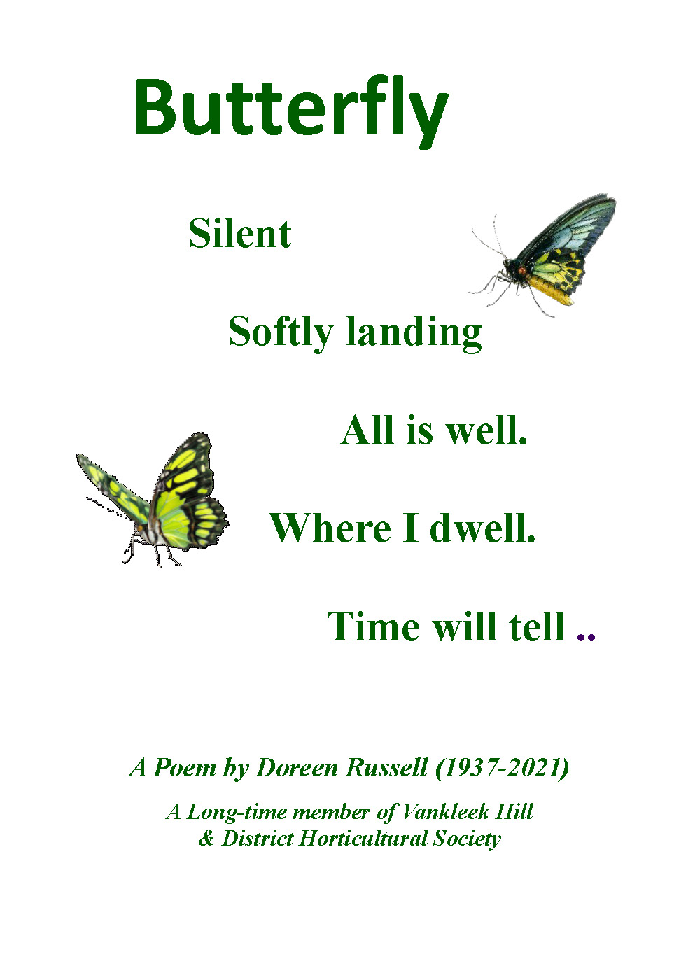 The Vankleek Hill Horticultural Society became the Vankleek Hill and District Horticultural Society.